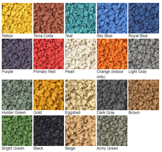 Wet poured, one-layer, troweled-on-site system: EPDM & aliphatic or aromatic urethane.