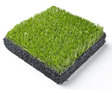 Poured Basemat: 100% post-consumer recycled SBR (Styrene Butadiene Rubber) and polyurethane. Synthetic Turf: Polyethylene fiber tufted into a backing with perforations for drainage.